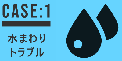 各水栓装置からの水漏れ、配管からの水漏れ、排水が悪い…etc。