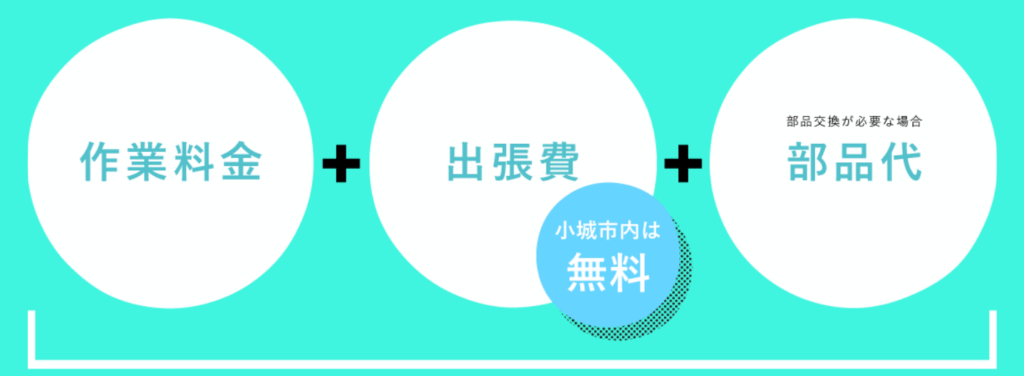 必要に応じて「出張費」「部品代」の合計がお支払いの総額となります。